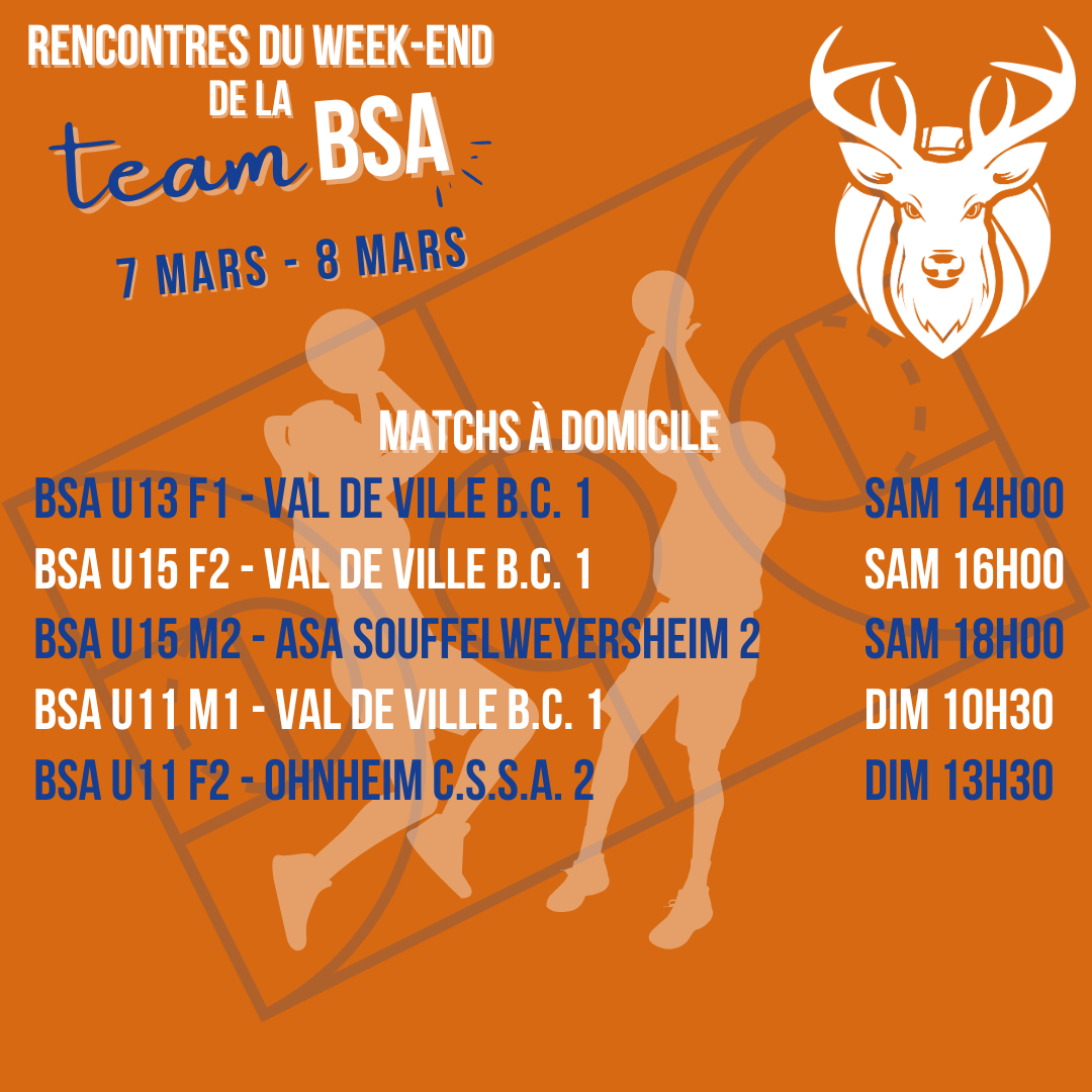 L'association Bruche Sport Academy vous informe des matchs qui se joueront à domicile ce week-end.